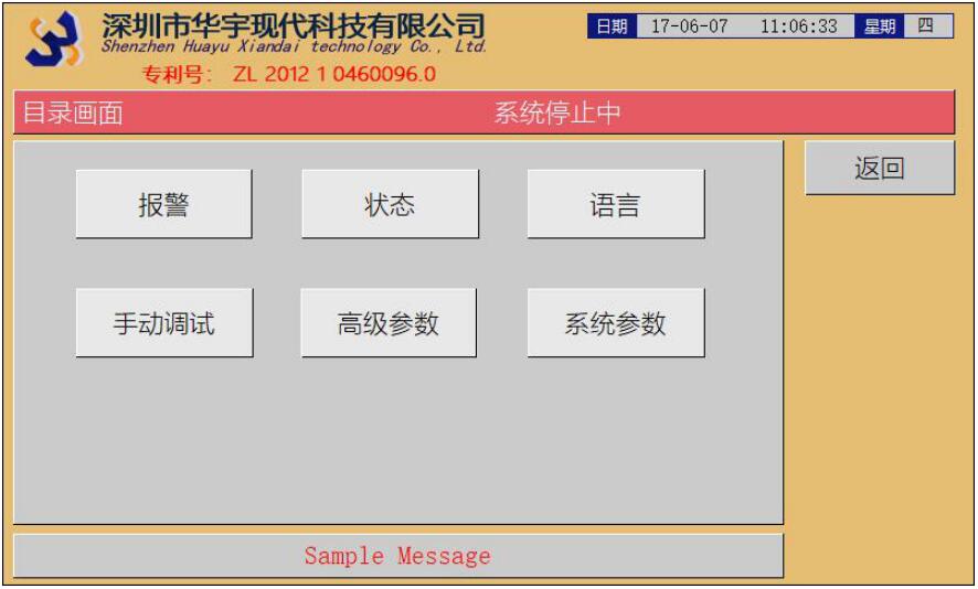目錄畫(huà)面:跳轉(zhuǎn)各個(gè)畫(huà)面,帶禁止標(biāo)志的按鈕需要權(quán)限密碼才能進(jìn)入。