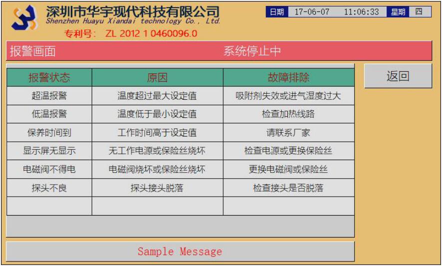 報(bào)警畫(huà)面:羅列出常見(jiàn)報(bào)警的原因以及處理方法。