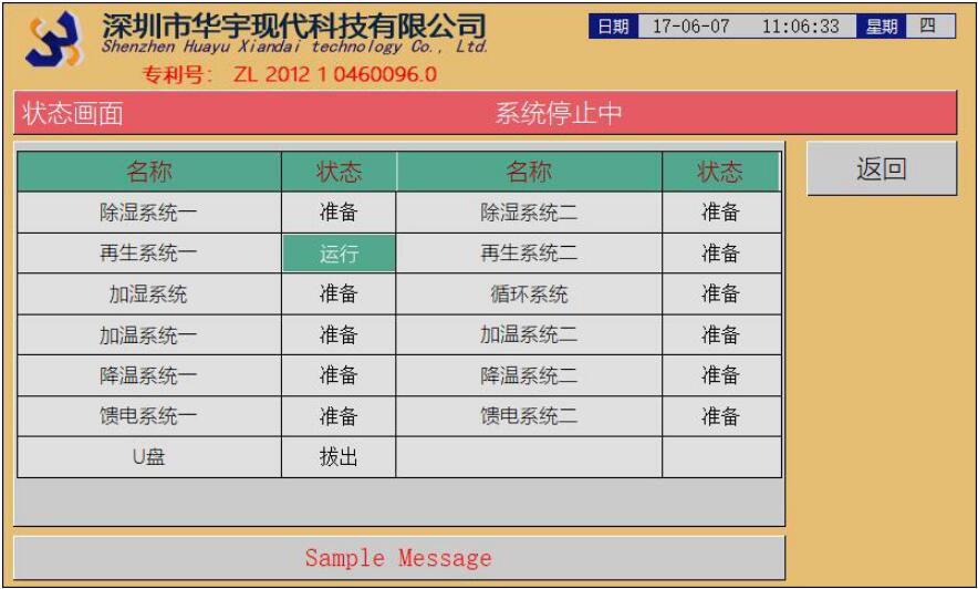 狀態(tài)畫(huà)面:當(dāng)前系統(tǒng)運(yùn)行的狀態(tài)一覽表