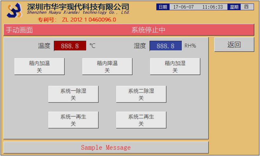 手動(dòng)畫(huà)面:手動(dòng)打開(kāi)或關(guān)閉系統(tǒng)單項(xiàng)功能模塊。需要一級(jí)密碼進(jìn)入。